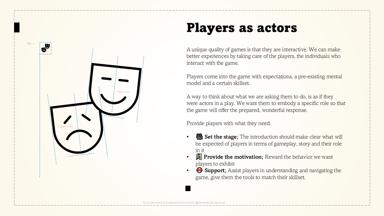 A way to think about what we are asking them to do, is as if they were actors in a play. We want them to embody a specific role so that the game will offer the prepared, wonderful response.