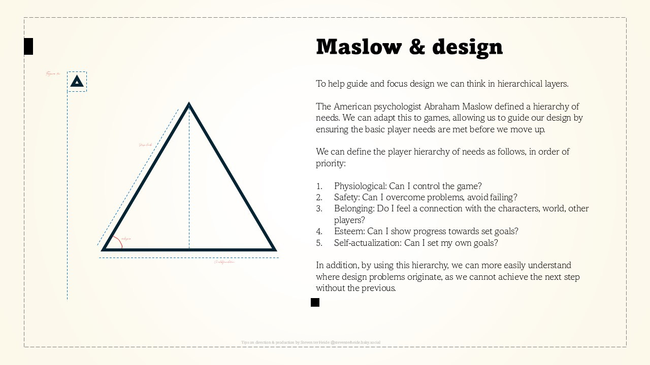 13. Maslow's hierarchy of needs can be a guiding principle for game design too