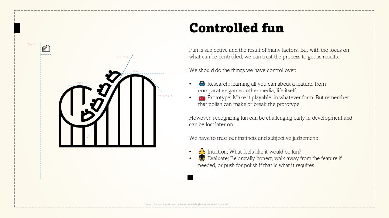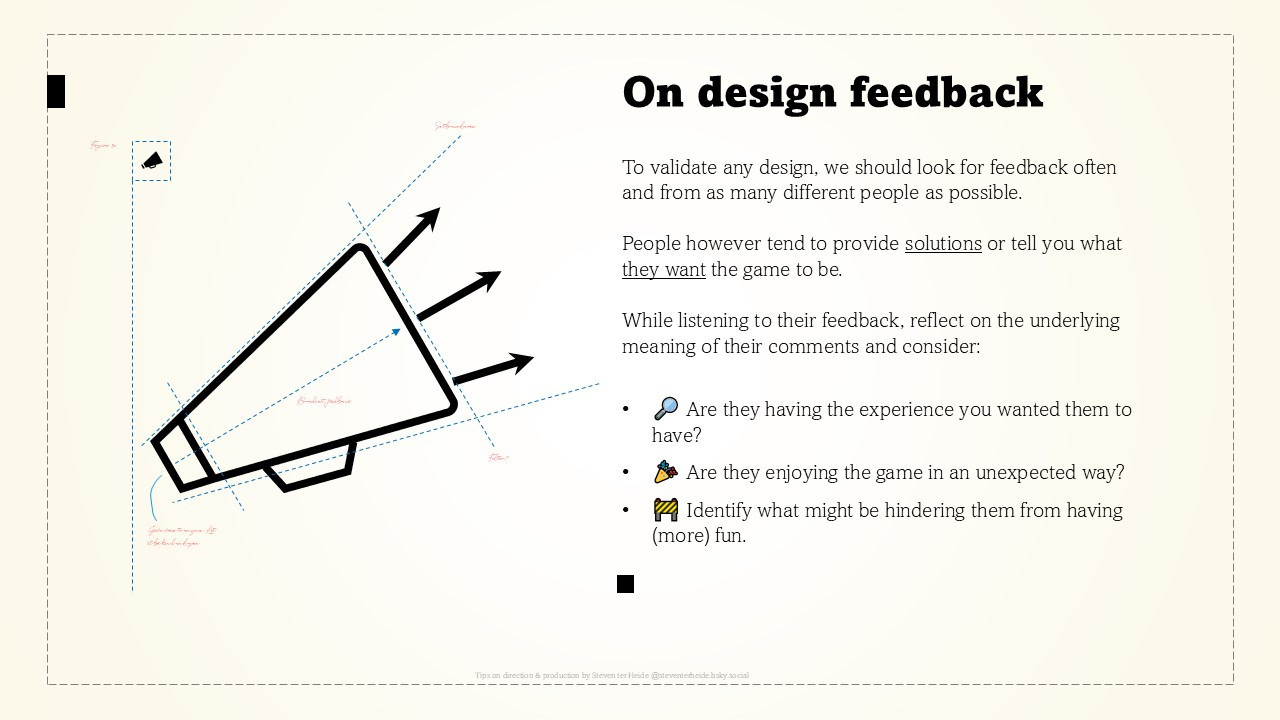 •🧰 Prototype; Make it playable, in whatever form. But remember that polish can make or break the prototype.