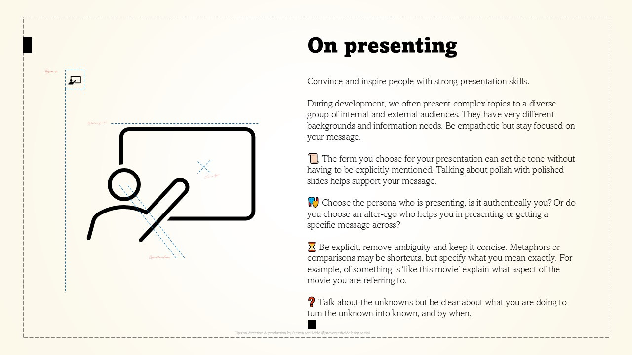 📜 The form you choose for your presentation can set the tone without having to be explicitly mentioned. Talking about polish with polished slides helps support your message.