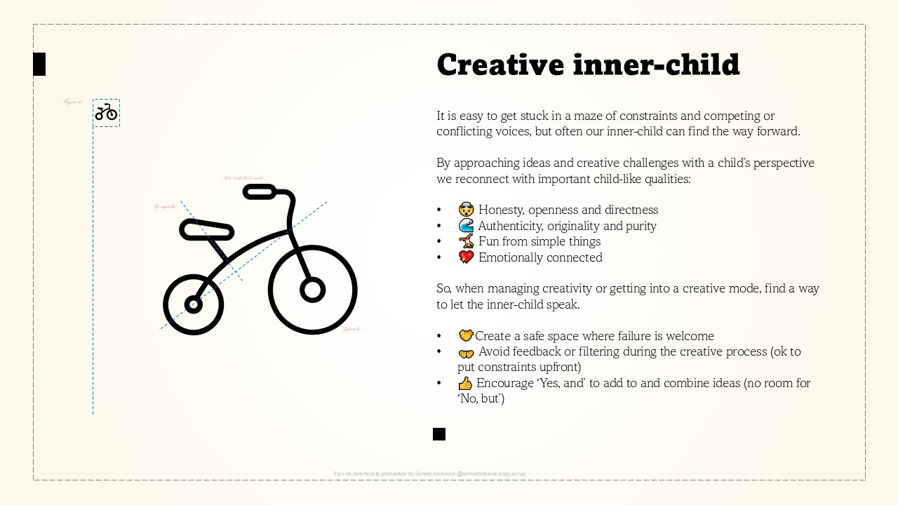 By approaching ideas and creative challenges with a child’s perspective we reconnect with important child-like qualities: